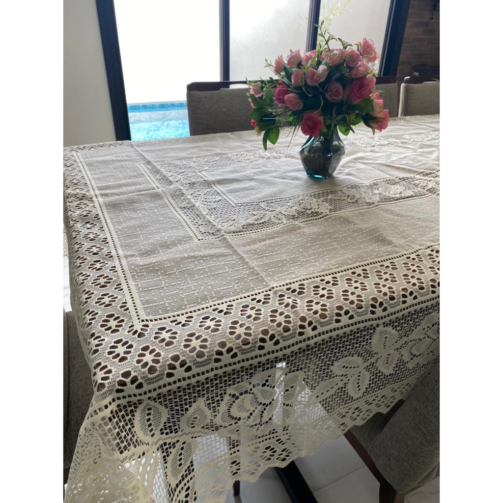 Toalha De Mesa Retangular De Renda 4 Cadeiras 1,60m X 1,60m Renda Trabalhada