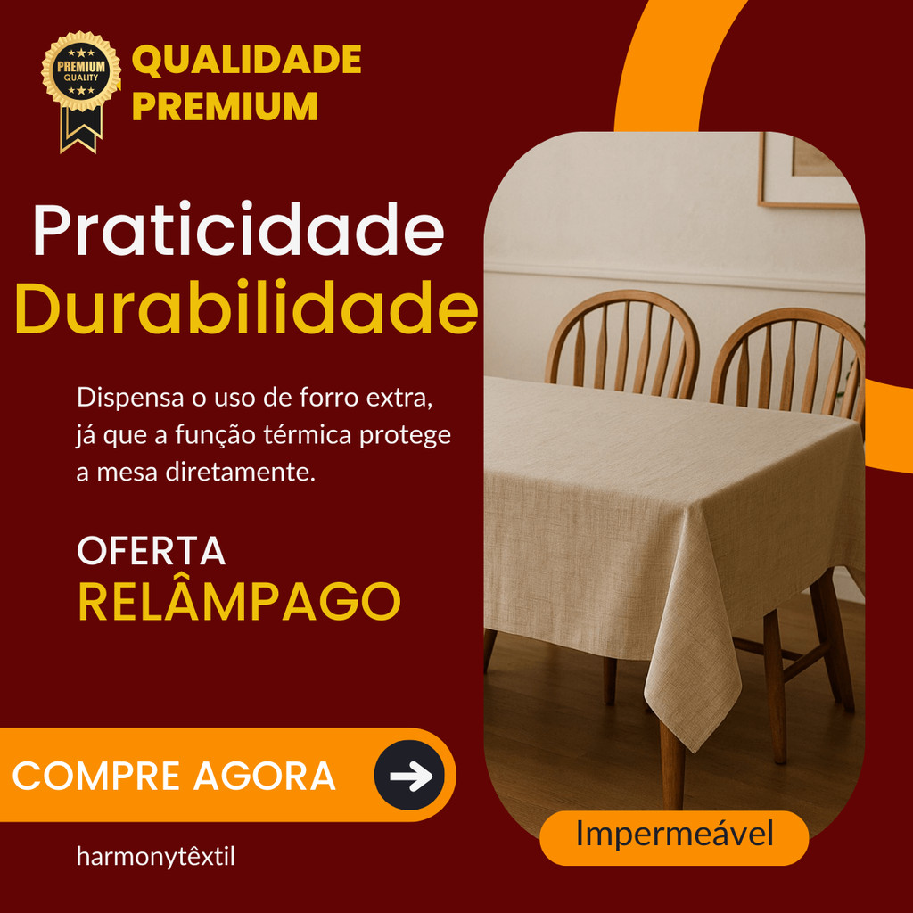 Toalha de Mesa de Plástico Térmica e impermeável, para mesas de 4 cadeiras,6 cadeiras e 8 cadeiras PRODUTO 100% NACIONAL EM ALTA QUALIDADE. * Antes de comprar, tire a medida da sua mesa para comprar o melhor tamanho da sua toalha. 1,40 X 1,40 metro. 4 cadeiras AO COMPRAR ESCOLHA A ESTAMPA, O TAMANHO E QUANTIDADE. Se você busca uma opção para deixar o seu ambiente mais bonito e sofisticado, temos Toalhas de Plástico em diversas estampas. As toalhas plásticas podem ser utilizada nas mais variadas aplicações, trazendo beleza e praticidade para diversas situações. São diversas opções de estampas podem ser utilizadas para cobrir mesas e móveis, oferecendo proteção e beleza. Especificações: - Toalha Plástica Térmica. - Largura: 1,40 metro padrão de fábrica. - Temperatura: até 70ºC - Filme de 100%PVC + reforço de forro - Fabricante: li bianco - Produto Brasileiro Nacional - Plástico Térmico de alta qualidade, não é Flanelada. - Foto Ilustrativa - Validade Indeterminada ATENÇÃO! As cores das estampas podem variar de acordo com as telas de celulares assim como tela do computador. Esse tipo de toalha é muito utilizado por ser fácil na limpeza no dia a dia, pois, não é necessário lavar, mas apenas passar um pano úmido com detergente neutro. Como cuidar ? Não lavar. Não use objetos cortantes sobre a toalha porque pode danifica-la. Não deixe sob o sol pleno porque pode rachar com o tempo.