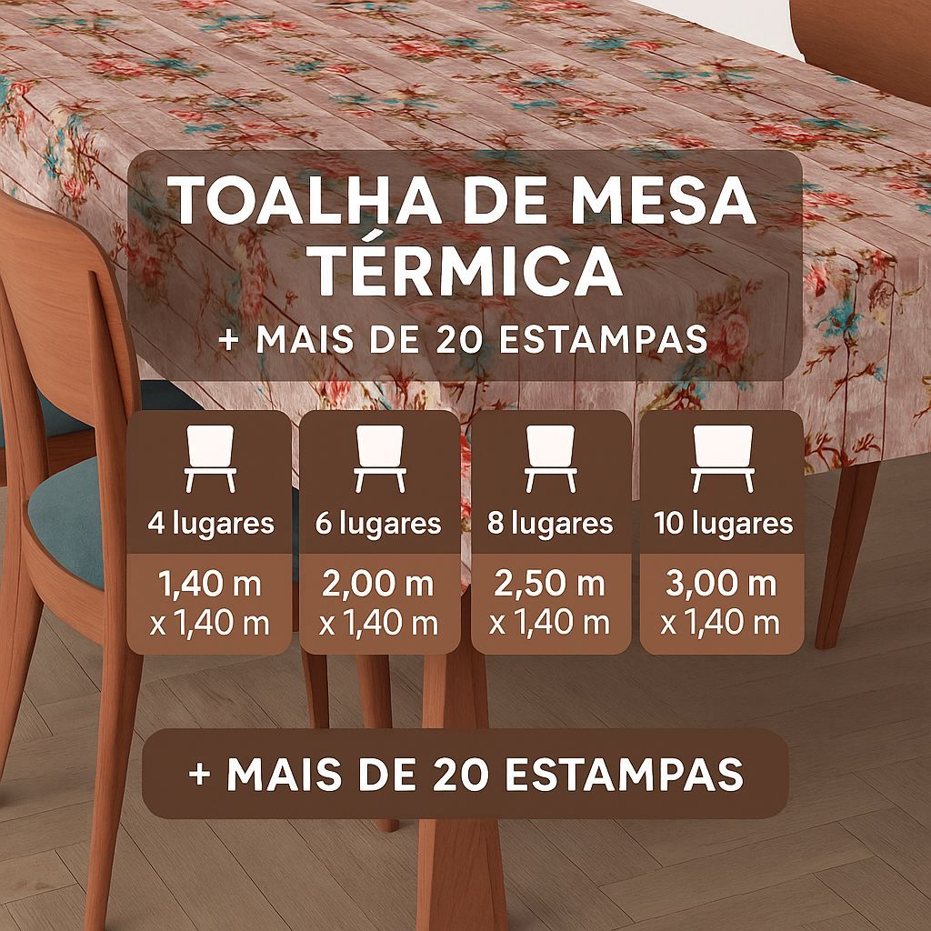 Toalha de Mesa Térmica Impermeável — Várias Estampas de 4 a 12 Lugares | Forro Decoração de Cozinha