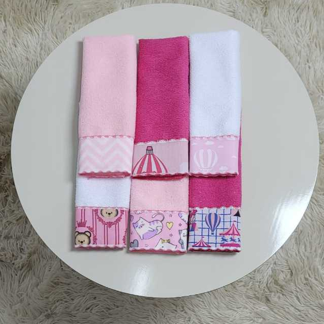 Toalha de Ombro ou Boca Babete Algodão Paninho De Boca Kit 06 Unidades Tecido Estampado 100% Algodão Atoalhado Felpudo