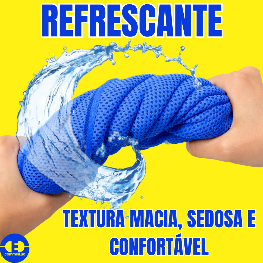 ❄️? Toalha de Resfriamento Esportiva MBFit | Frescor Instantâneo_x000d_ _x000d_ A Toalha de Resfriamento Esportiva MBFit foi desenvolvida com 3 camadas de tecido em microfibra, proporcionando uma sensação imediata de frescor durante a prática de atividades físicas ?. Sua tecnologia de resfriamento instantâneo é ativada ao molhar a toalha ou até mesmo com o próprio suor do corpo._x000d_ _x000d_ Para reutilizar, basta espremer e sacudir por alguns segundos para que a toalha volte a ficar seca e pronta para uso. Ao ser colocada sobre o corpo, entrega um efeito refrescante contínuo, auxiliando no conforto térmico durante os treinos ?➡️❄️._x000d_ _x000d_ Leve, prática e fácil de transportar, é ideal para diversos esportes e atividades ao ar livre, acompanhando você em qualquer momento do dia ?._x000d_ _x000d_ ⭐ Características_x000d_ ✔️ Ideal para todos os esportes_x000d_ ✔️ Tecnologia de resfriamento instantâneo_x000d_ ✔️ Secagem rápida_x000d_ ✔️ Tecido respirável_x000d_ ✔️ Leve e compacta_x000d_ _x000d_ ? Composição_x000d_ ✔️ Poliéster (microfibra)_x000d_ _x000d_ ? Dimensões e Peso_x000d_ ✔️Largura: 29 cm_x000d_ ✔️Comprimento: 88 cm_x000d_ ✔️Peso: 35 g_x000d_ _x000d_ ? Conteúdo da Embalagem_x000d_ ✔️ 01 Toalha Esportiva de Resfriamento MBFit_x000d_ ✔️ 01 Potinho para transporte_x000d_ _x000d_ ❓ Perguntas Frequentes (FAQs)_x000d_ _x000d_ 1. Como funciona a toalha de resfriamento?_x000d_ ✔️A toalha utiliza tecnologia de resfriamento instantâneo. Basta molhar, torcer e sacudir por alguns segundos para ativar o efeito refrescante ao entrar em contato com o corpo._x000d_ _x000d_ 2. A toalha seca rapidamente?_x000d_ ✔️Sim. O tecido em microfibra possui secagem rápida, podendo ser reutilizado diversas vezes durante o treino._x000d_ _x000d_ 3. Pode ser usada em qualquer tipo de atividade física?_x000d_ ✔️Sim. É ideal para esportes, academia, corrida, caminhada, ciclismo, yoga, trilhas e atividades ao ar livre._x000d_ _x000d_ 4. Precisa de gelo ou produtos químicos para resfriar?_x000d_ ✔️Não. O resfriamento acontece apenas com água ou com o próprio suor do corpo, sem necessidade de produtos adicionais._x000d_ _x000d_ 5. A toalha é confortável para a pele?_x000d_ ✔️Sim. O material é leve, macio e respirável, garantindo conforto durante o uso prolongado._x000d_ _x000d_ 6. É fácil de transportar?_x000d_ ✔️Sim. Acompanha um potinho para transporte, facilitando o uso em bolsas, mochilas ou academias ?._x000d_ _x000d_ 7. Qual o tamanho da toalha?_x000d_ ✔️A toalha mede 29 cm de largura por 88 cm de comprimento, tamanho ideal para uso no pescoço, ombros ou cabeça._x000d_ _x000d_ 8. Pode ser lavada?_x000d_ ✔️Sim. Pode ser lavada normalmente, mantendo suas propriedades de resfriamento._x000d_ _x000d_ ? Garanta já a sua!_x000d_ _x000d_ _x000d_ Tenha mais conforto, frescor e desempenho nos seus treinos com a Toalha de Resfriamento Esportiva MBFit ❄️?_x000d_ _x000d_ BOAS COMPRAS VOLTE SEMPRE!