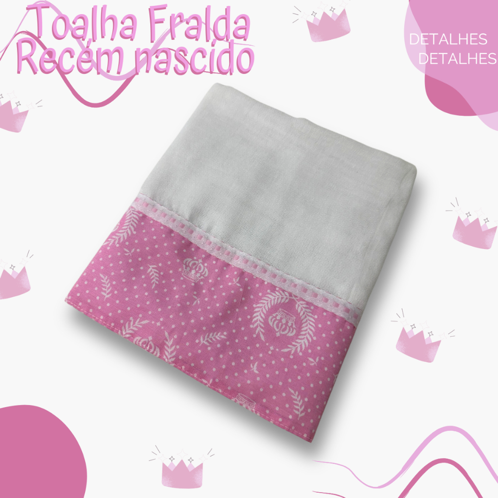 Toalha Fralda com Barrado Estampado – 100% Algodão | Ideal para Recém-Nascidos | Fabricação Própria A delicadeza que seu bebê merece! Nossa toalha fralda é feita em tecido 100% algodão, super macio e absorvente, ideal para secar a pele sensível dos recém-nascidos com todo o cuidado. O charme fica por conta do barrado estampado também em algodão, com diversas opções de estampas fofas para tornar cada momento ainda mais especial. Um item indispensável no enxoval! 📏 Tamanho aproximado: • Comprimento: 1,00 metro • Largura: 70 cm 🧵 Fabricação própria – com carinho e atenção em cada detalhe 🎀 Estampas sortidas (enviadas conforme disponibilidade) 💙 Conforto, maciez e estilo no dia a dia do bebê