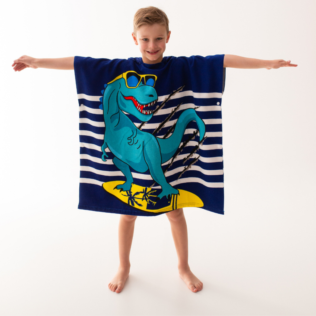 Toalha Infantil Com Capuz Menino Dinossauro Secagem Rapida Praia Piscina Natação Poncho Surf