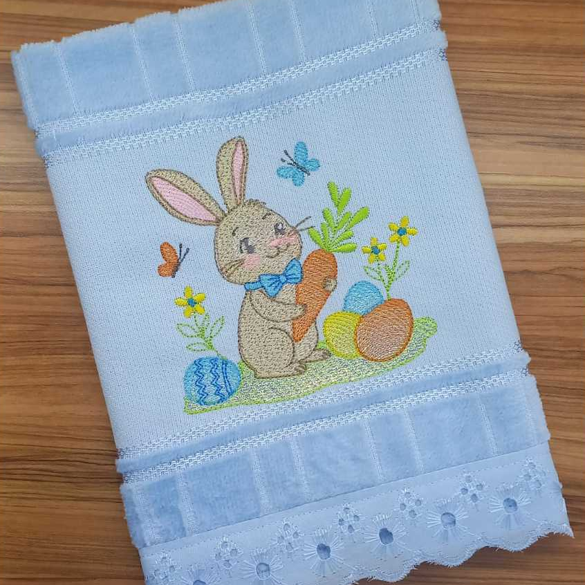 TOALHA LAVABO COELHO PÁSCOA VÁRIOS TEMAS BORDADA À MÁQUINA. (30cm x 45cm).
