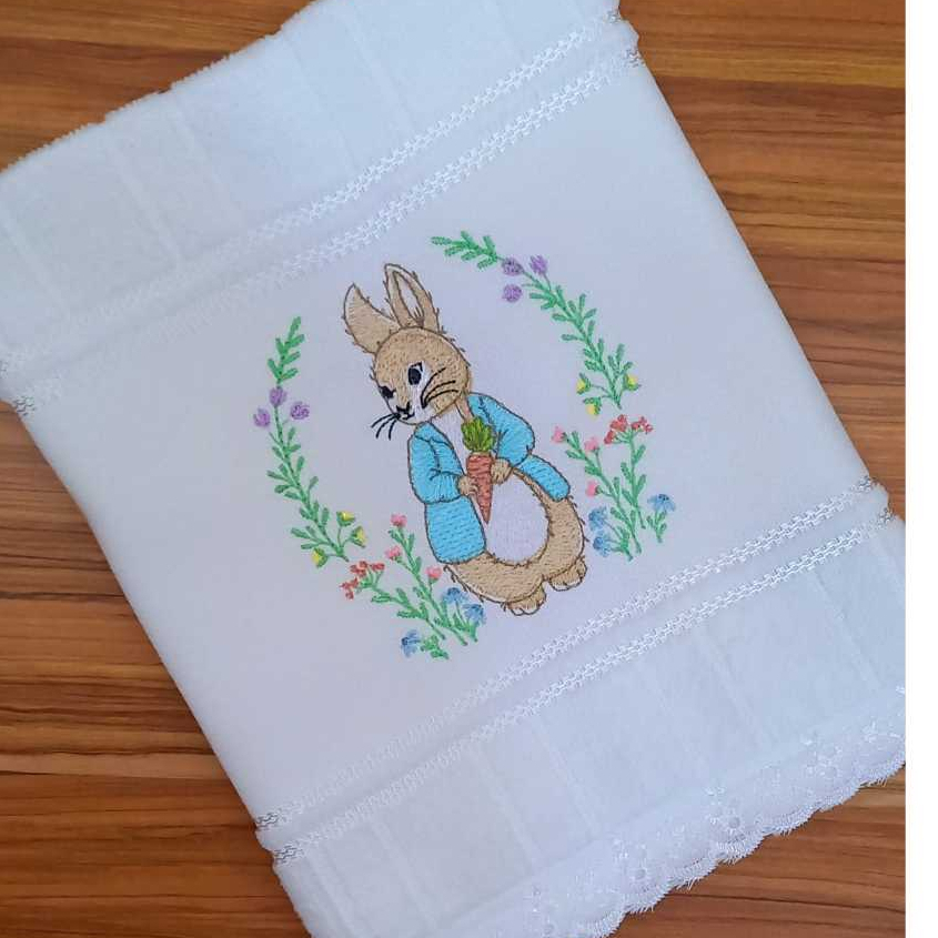 TOALHA LAVABO PÁSCOA COELHO VINTAGE BORDADA À MÁQUINA..(TAMANHO 30CM X 45CM).