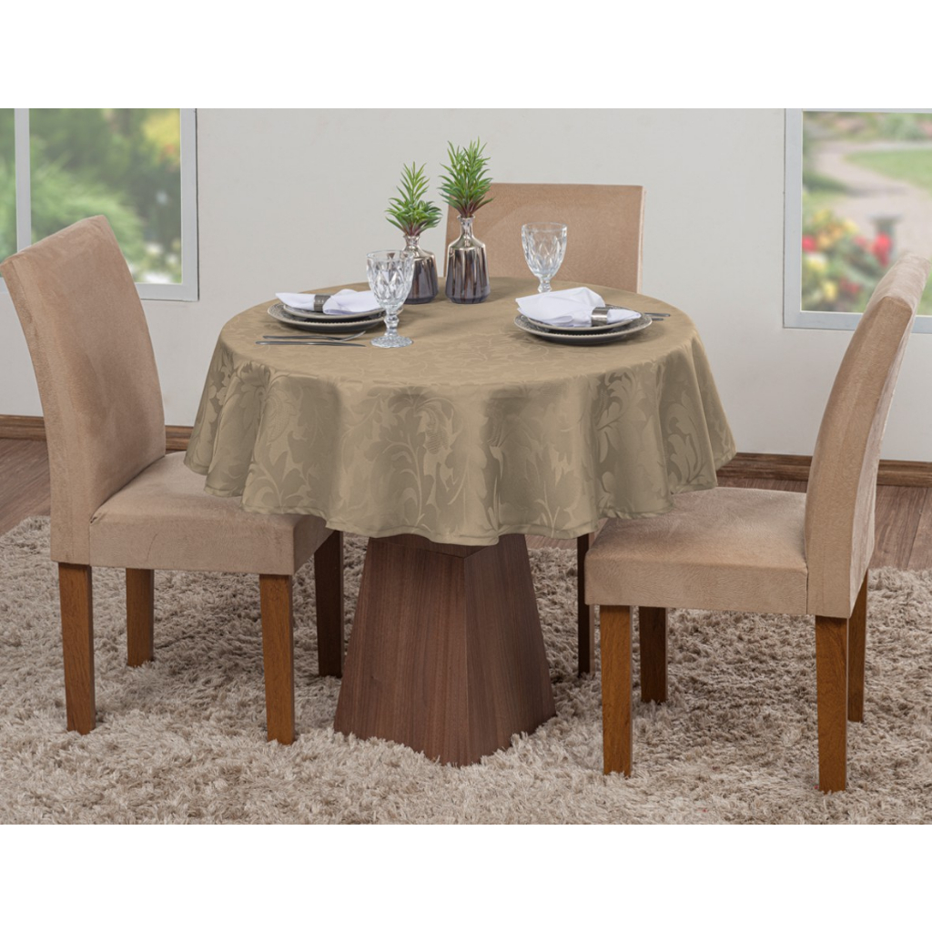 Toalha Mesa Luxo Redonda Sala Jantar Jacquard 4 Lugares