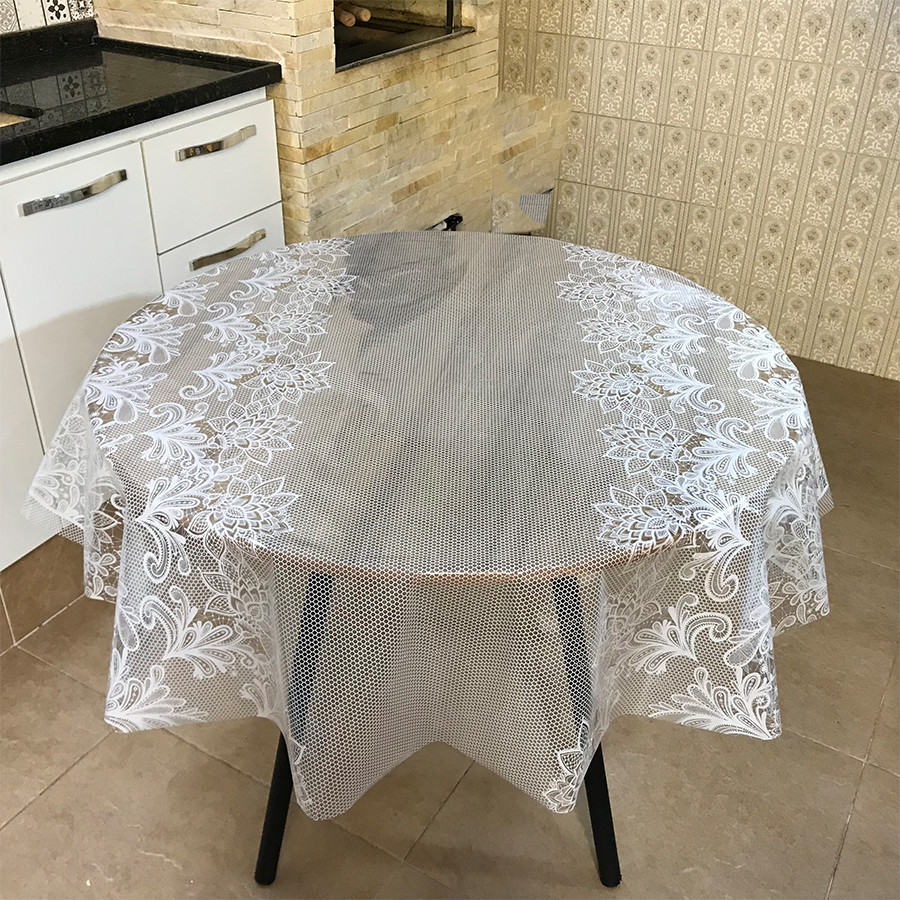 Toalha Mesa Plástico Redonda Renda Delicada 1,40 Diametro