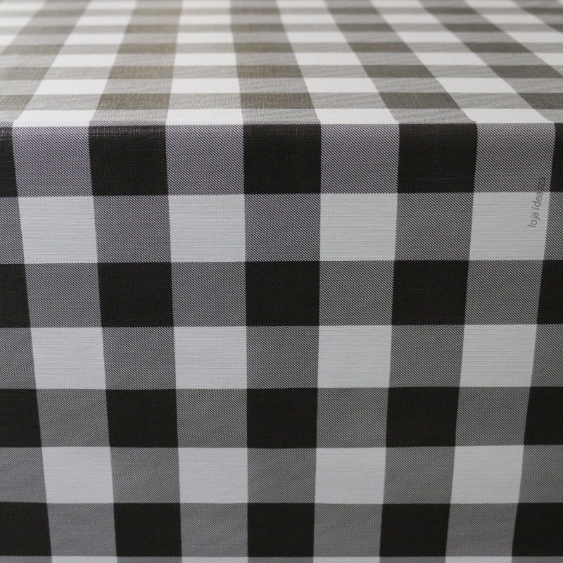 Toalha Mesa Térmica Impermeável Pvc Xadrez Preta Redonda 1,38