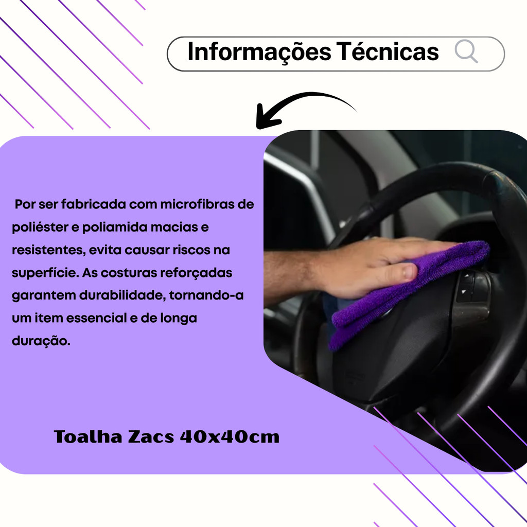 Toalha Microfibra 40X40Cm Limpeza Automóveis - Zacs