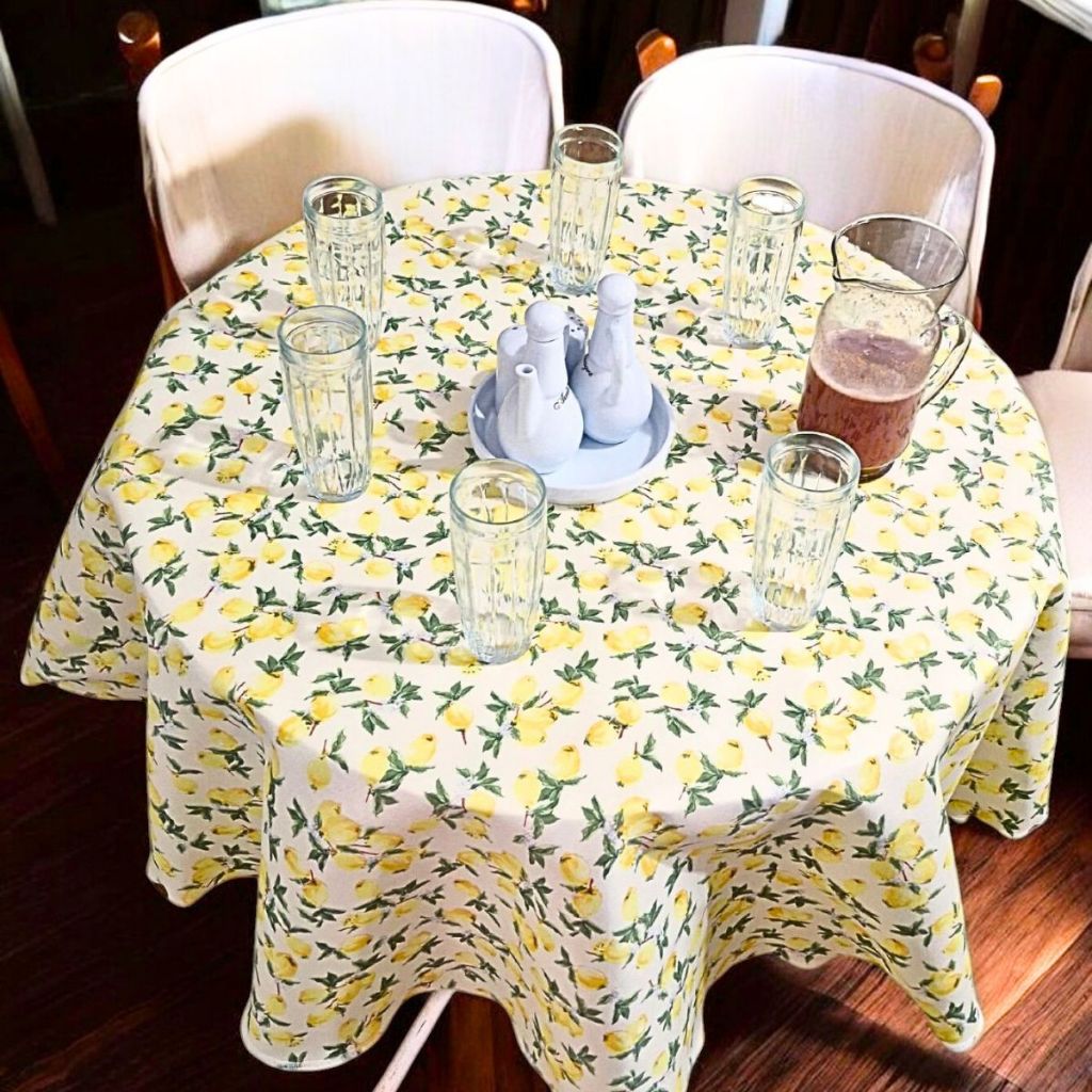 Toalha Redonda Estampada de Mesa Limão Siciliano 1,50 x 1,50 Tecido Oxford
