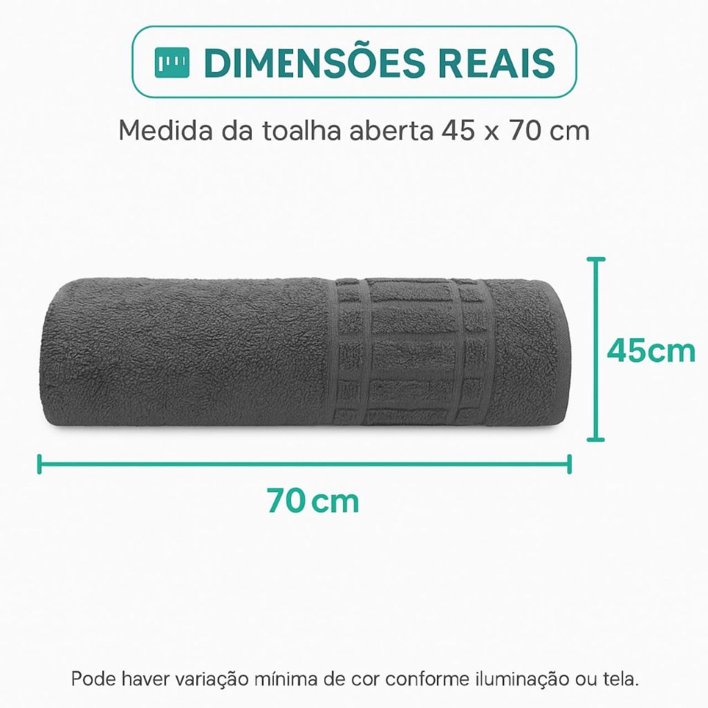 Descrição Complementar – Toalha Loft Rosto 45x70 cm Chumbo Transforme o cuidado diário em um momento de conforto e elegância com a Toalha de Rosto Loft 45x70 cm – Cor Chumbo. Produzida em 100% algodão, possui gramatura de 400 g/m², garantindo alta absorção, maciez e durabilidade. Seu tom chumbo/cinza escuro é moderno, sofisticado e combina com qualquer estilo de banheiro, além de ser prático para o dia a dia por não evidenciar facilmente manchas ou sujeiras. Diferenciais: Tamanho ideal (45×70 cm) para uso diário em banheiros residenciais, hotéis e pousadas Maciez e absorção superior, proporcionando toque agradável na pele Acabamento reforçado que aumenta a durabilidade mesmo após várias lavagens Cor moderna e neutra, perfeita para compor kits e conjuntos de enxoval Produto versátil: uso em casa, salão de beleza, clínica estética ou hospedagem Conteúdo da embalagem: 01 Toalha de Rosto Loft 45×70 cm – Chumbo