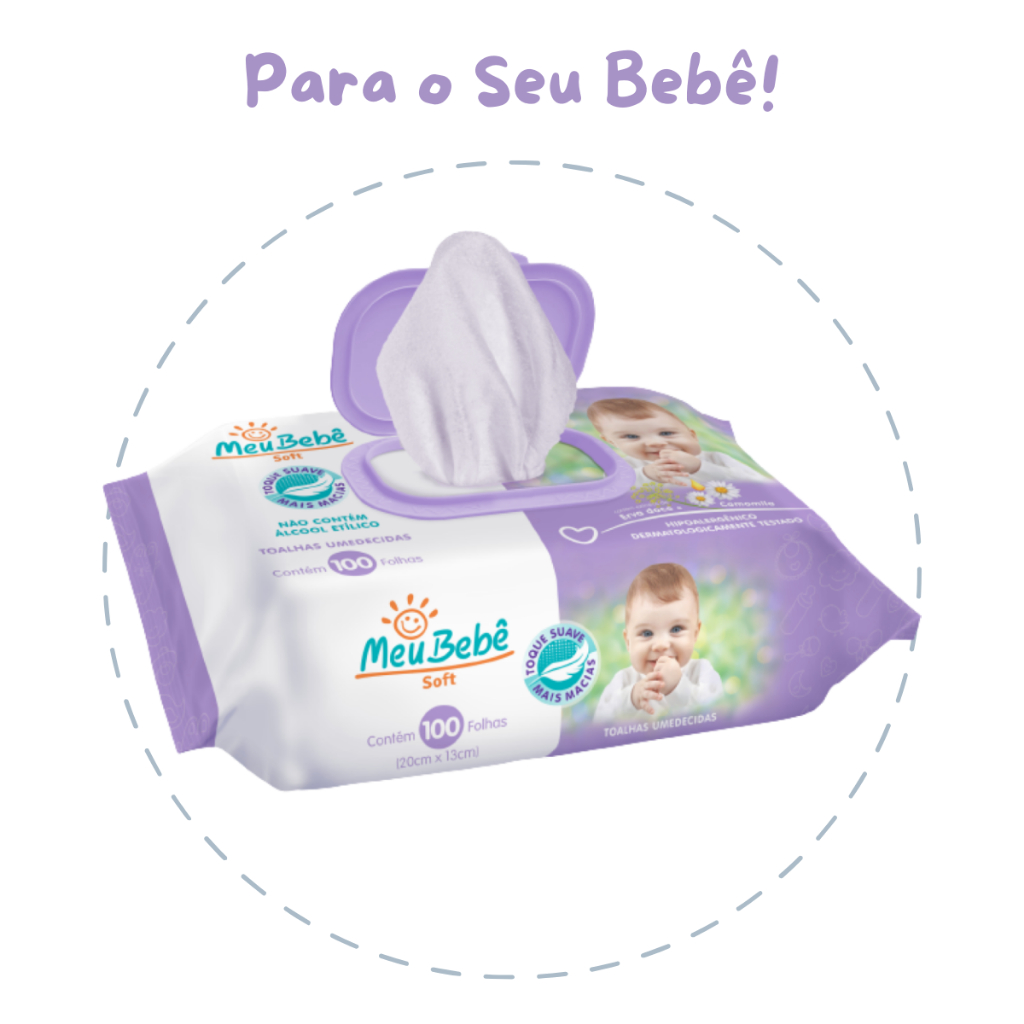 ESTE ANÚNCIO REFERE-SE A 3 PACOTE DES 100 FOLHAS DA TOALHA MEU BEBÊ SOFT. As toalhas umedecidas Meu Bebê Soft foram desenvolvidas com produtos de primeira qualidade e muito carinho para o cuidado e higiene da sua pele. Sem álcool etílico ,sua formula é enriquecida com extrato natural de Camomila e Erva Doce, que protege e hidrata a pele, deixando-a macia e delicadamente hidratada. Com extrato de Erva Doce, possui ação refrescante, calmante e suavizante para sua pele. Com extrato de camomila, tem ação relaxante, um potente agente anti-inflamatório, além de limpar e hidratar a pele enquanto acalma irritações. Toalhas mais macias com tecido ondulado.