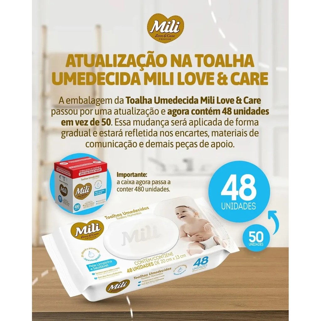 | Toalhas Umedecidas Mili Love E Care 480 Unidades - Mili este produto | R$ 77,90 | — | 4.9/5 | — |