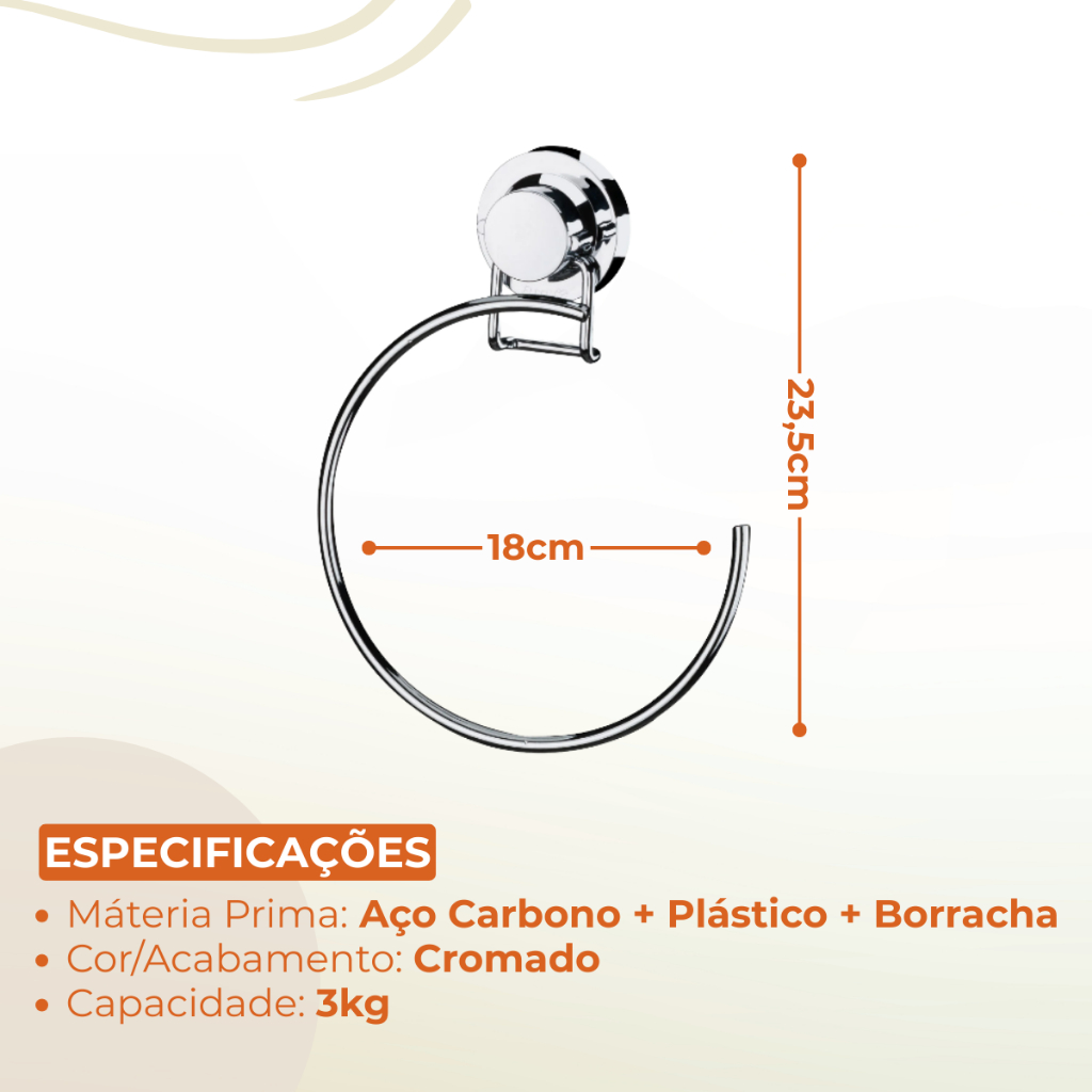 Toalheiro Argola Cromado Redondo Porta Toalha Mãos Rosto Aço Carbono Sem Furos Ventosa