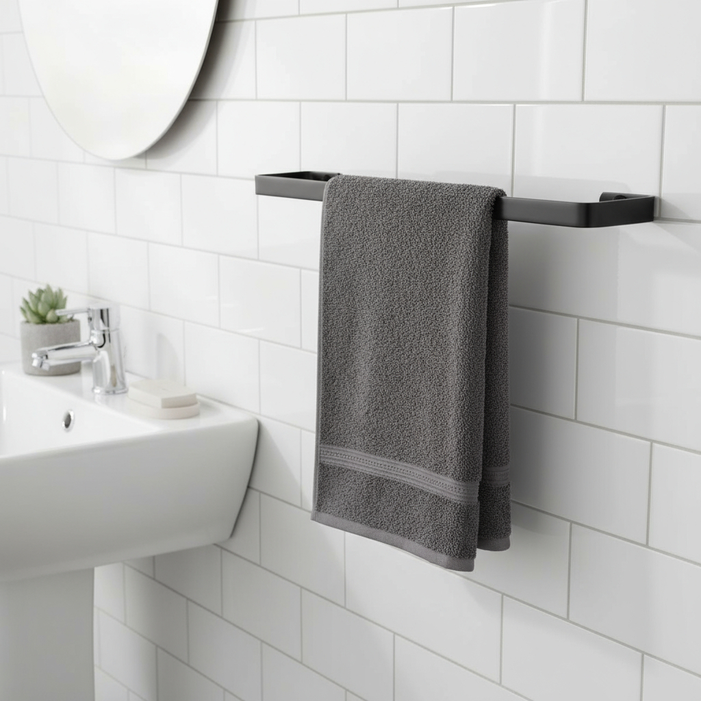 Toalheiro De Parede Preto Fosco – Suporte Toalha Banho Banheiro Alumínio Resistente
