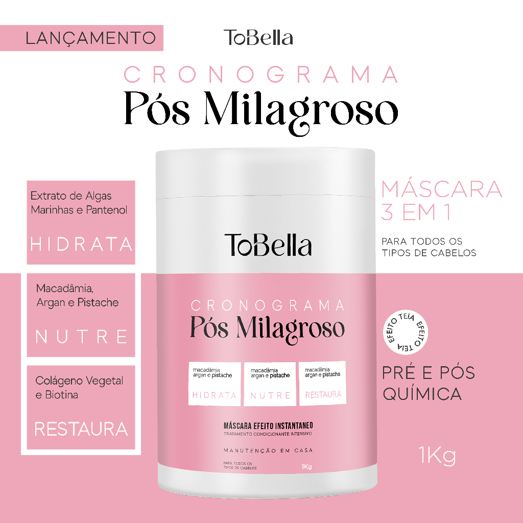 ToBella Máscara Cronograma Pós Milagroso 3 em 1 Hidratação Nutrição Restauração