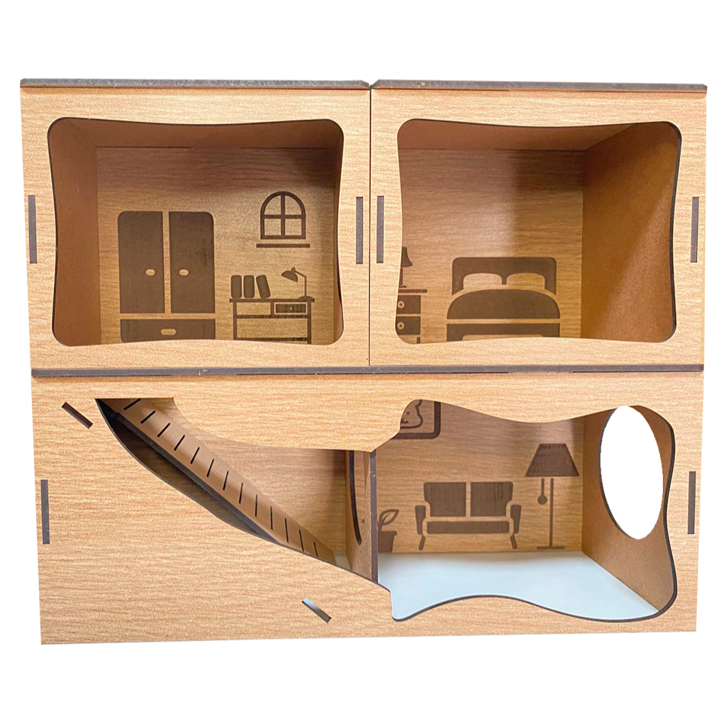 TOCA CÔMODO O LAR PERFEITO PARA O SEU PET!🏠❤️ Transforme o terrário do seu hamster em um verdadeiro lar! A Toca Cômodo foi projetada para se assemelhar aos cômodos de uma casa, permitindo ao seu pet um ambiente mais acolhedor e divertido. Com essa linha de tocas modulares, você pode montar e conectar diferentes cômodos, como sala, quarto, cozinha, banheiro, garagem, escritório, criando uma verdadeira casa personalizada para o seu hamster. Cada peça é segura, resistente e fácil de encaixar, facilitando a montagem e o ajuste conforme as necessidades e o espaço disponível. Proporcione uma experiência única de bem-estar e exploração para o seu amiguinho! O produto chegará até você desmontado, mas não se preocupe! A montagem é muito simples e acompanha manual explicando o passo a passo detalhado. 😉 OBS: Esse modelo de toquinha é recomendado apenas para Hamsters, Gerbis e Topolinos. Não é recomendada devido o tamanho para Porquinhos da India e Coelhos. _____________________________________ 👉 Em qual material ela é feita? A toquinha é feita em MDF laminado de 3mm. Quais as dimensões reais do produto individual? 👉 O produto possui: ALTURA - 12cm LARGURA – 15cm PROFUNDIDADE - 12cm ABERTURA ENTRADA - 7cm Quais as dimensões reais do produto dupla? 👉 O produto possui: ALTURA - 12cm LARGURA – 30cm PROFUNDIDADE - 12cm ABERTURA ENTRADA - 7cm Como o envio é feito? 👉 Os envios são feitos em até 24h após a efetivação da compra. Embalamos com todo cuidado e carinho para o seu bichinho. ______________________________________ 💻 Para mais dúvidas e informações, entre em contato através do chat!