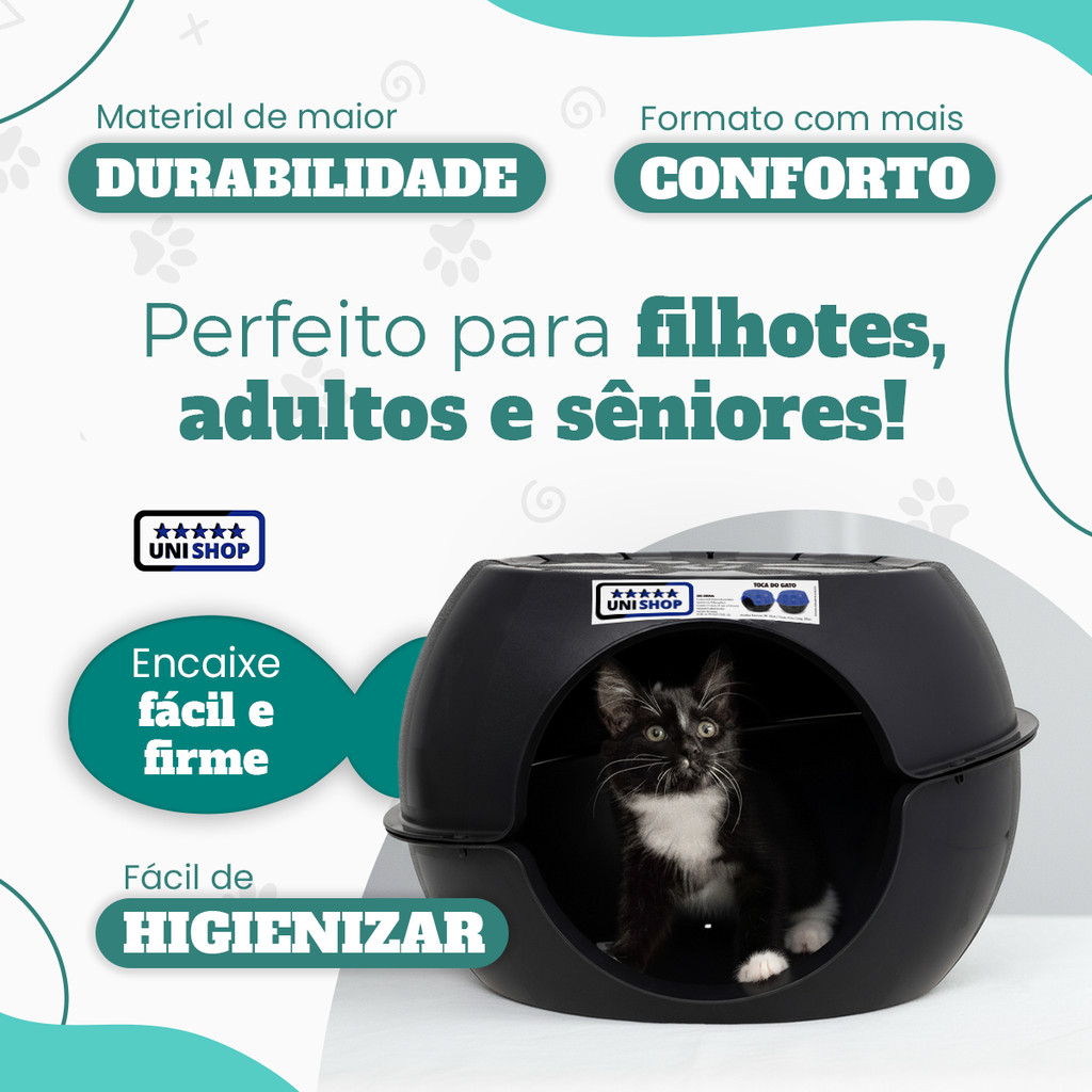 Toca de Gato Paris - Conforto e Privacidade para Seu Felino! 🐾 Proporcione ao seu gato(a) o refúgio perfeito com a Toca de Gato Paris da Furacão Pet! Feita de plástico resistente e de alta qualidade, esta toca é ideal para oferecer um espaço privado, aconchegante e seguro para o descanso do seu felino. Os gatos amam esconderijos, e com a Toca Paris, seu bichano terá o local perfeito para relaxar, dormir e se sentir protegido. 🛋️ Conforto e Privacidade: Design moderno que garante o máximo de conforto e tranquilidade para o seu gato(a), seja ele filhote, adulto ou sênior. 💡 Praticidade: Fácil de montar e de limpar, com base ventilada que ajuda a manter o ambiente fresquinho. 🔒 Durabilidade: Feita com material de alta qualidade, essa toca é resistente e durável, oferecendo segurança para seu pet. Características: - Marca: Furacão Pet - Modelo: Paris - Cor: Azul, Lilás, Preto, Rosa - Material: Plástico resistente e de alta qualidade - Indicado para: Gatos de todas as idades (filhotes, adultos e sêniores) - Tipo de montagem: Encaixe com travas - Forma: Toca compacta e aconchegante Vantagens: - Fácil de montar e desmontar - Super resistente e fácil de higienizar - Base ventilada para mais conforto - Materiais de alta qualidade que garantem maior durabilidade Dimensões: - Toca: 34 x 53 x 40 cm (altura x largura x comprimento) - Embalagem: 13 x 41 x 55 cm - Peso: 1,5 kg Conteúdo da embalagem: - 1 Base - 1 Teto - 1 Kit de Travas Transforme o descanso do seu felino em um momento de puro prazer com a Toca Paris. Adquira já a sua! 😻