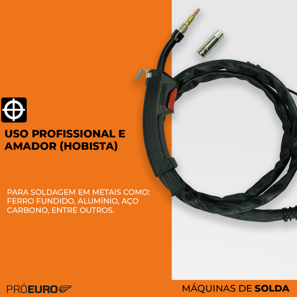 Tocha Mig 14ak Conector 9mm 150a 2m Arame Tubular Sem Gás - Pró Euro