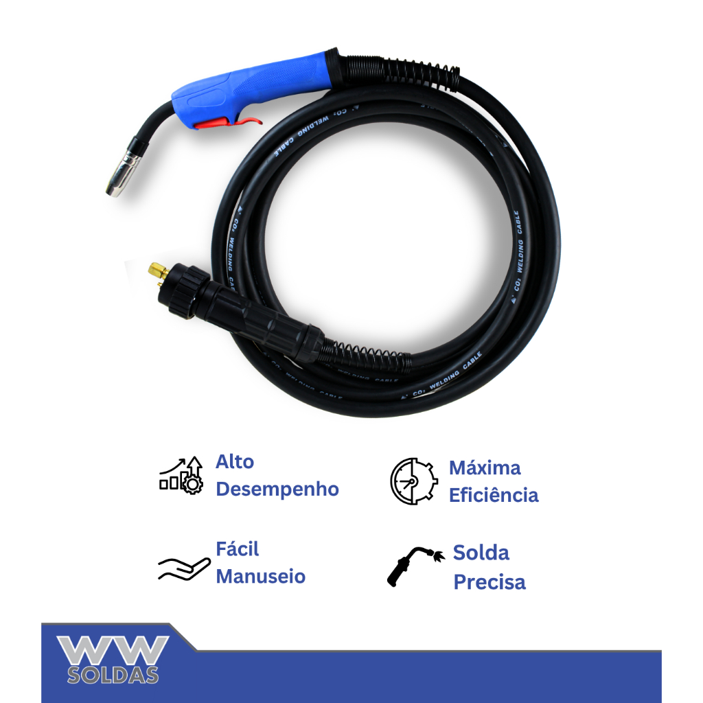 TOCHA MIG UT-15 WWSOLDAS A Tocha MIG UT-15 WWSoldas foi projetada para oferecer precisão, conforto e desempenho constante em soldagens leves e médias. Com 5 metros de comprimento e conector padrão euro, proporciona ótimo alcance, além de compatibilidade com diversas máquinas de solda MIG/MAG. Leve e ergonômica, é ideal para trabalhos contínuos, garantindo maior controle e segurança durante a operação. Indicada para uso profissional, automotivo e industrial leve, oferece durabilidade e estabilidade na soldagem de aço carbono, inox e alumínio (com arames adequados). Especificações Técnicas Modelo: UT-15 Tipo: Tocha para solda MIG/MAG Conector: Euro (padrão) Capacidade: Até 200A Aplicação: Soldagem com arame sólido e tubular Uso: Profissional / Industrial leve Destaques Cabo flexível e leve para melhor manuseio Conector euro de fácil encaixe e troca Alta precisão e estabilidade no arco elétrico Ideal para oficinas, serralherias e manutenção Compatível com diversas marcas de máquinas MIG