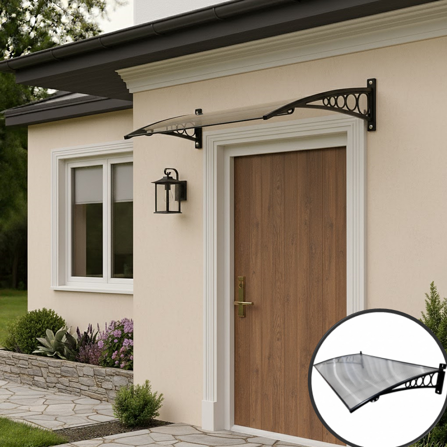 Toldo Policarbonato 1,00x0,50m Slim Suporte ABS Proteção UV Contra Sol e Chuva p/ Portas e Janelas