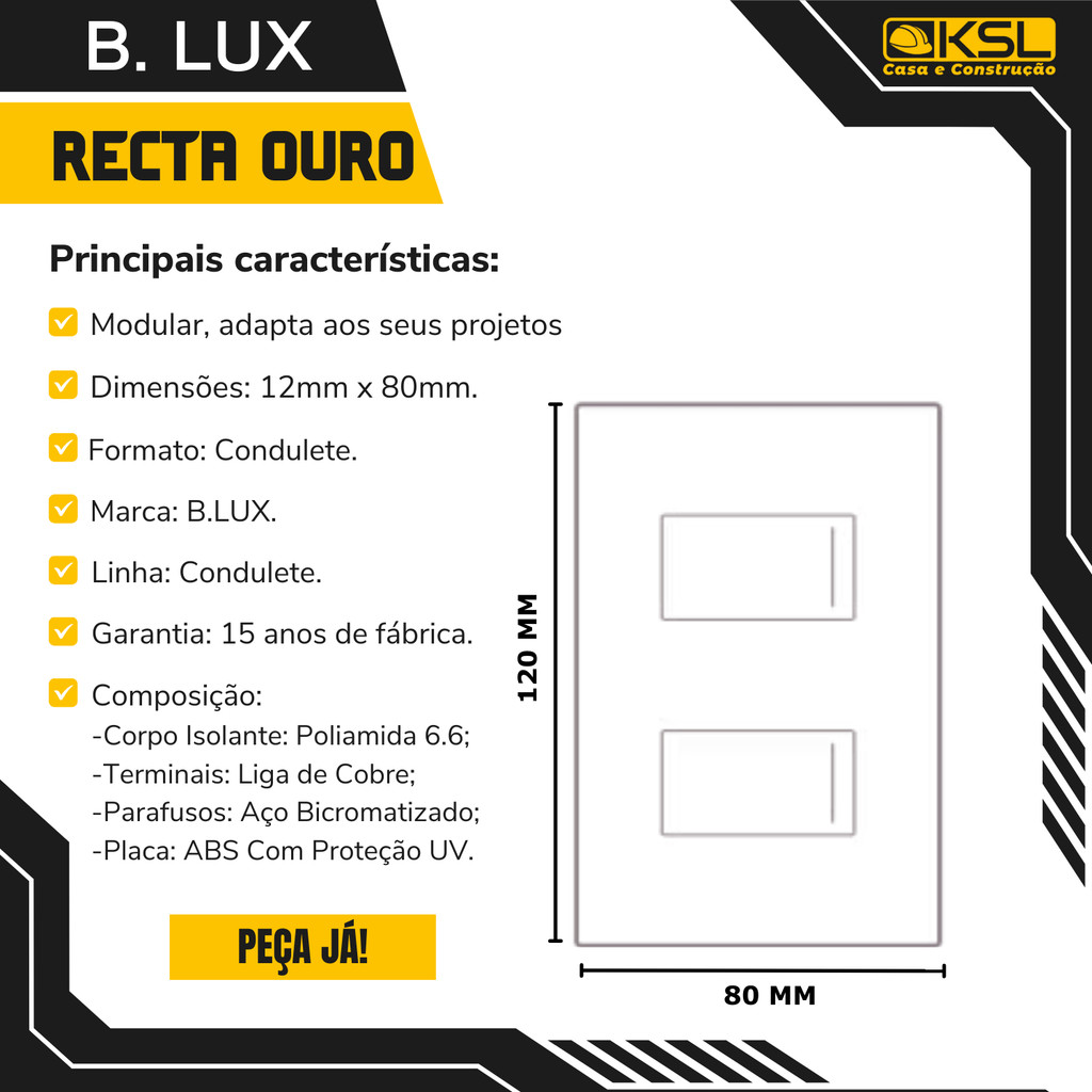 ***Monte seu kit personalizado e economize com a KSL Construções!*** >>>Mande sua lista completa nos campos de perguntas/chat e garanta descontos especiais com garantia de melhor preço! Conheça as tomadas e interruptores que fazem parte da prestigiada linha Recta B.LUX. Se você busca qualidade e versatilidade para seus projetos elétricos e de iluminação, encontrou a solução ideal. Conteúdo do anúncio: Tomada 20A com Interruptor Paralelo Threeway Ouro Nobre. -Quantidade: 01 Und. -Cor: Ouro Nobre -Linha: Recta Satin; -Marca: B.LUX; -Formato: 4x2 -Dimensões: 122mm x 82mm Principais características: - Conjunto completo: Placa, módulo, suporte e parafusos inclusos, garantindo praticidade e economia em uma única compra. - Integração estética perfeita com seu ambiente. - Garantia de durabilidade: 15 anos de garantia de fábrica, assegurando a longevidade do produto. - Instalação flexível: 4 entradas independentes para fios e cabos em cada borne, proporcionando facilidade e versatilidade nas instalações. - Proteção superior: Aditivo de proteção para raios UV mantém a aparência impecável ao longo dos anos, resistindo aos efeitos do tempo e garantindo durabilidade excepcional. Este produto é comprovado por grandes arquitetos e construtoras, sendo a escolha preferida para integrar projetos de excelência. Além disso, ao adicionar este produto ao seu carrinho de compras, você economiza no frete. Nossos preços competitivos se tornam ainda mais atrativos quando mais produtos são selecionados. Com entrega rápida e confiável, sua compra chega rapidamente até você, pronta para elevar seus espaços com sofisticação. Não perca mais tempo! Adicione agora ao seu carrinho na KSL Construções e faça parte daqueles que valorizam a excelência em soluções elétricas. Eleve seu padrão com B.Lux!