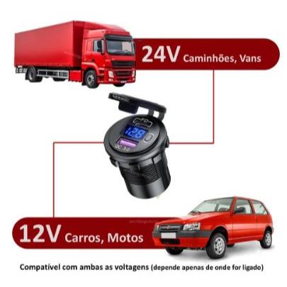 Carregador Veicular Digital 12V/24V Tipo-C + USB QC 3.0 com Display de Voltagem ✅ Compatível com: carros, motos, caminhões, vans, ônibus e barcos ✅ Bivolt Automático: funciona em 12V ou 24V ✅ Display Digital: mostra a voltagem da bateria ✅ Portas de Carregamento: Tipo-C (PD) para celulares e dispositivos modernos USB QC 3.0 para carregamento rápido universal ✅ Carregamento Duplo: recarrega 2 dispositivos ao mesmo tempo ✅ Interruptor Liga/Desliga: evita consumo de bateria quando não estiver em uso ✅ Proteção Extra: tampa com vedação contra poeira e respingos de água ✅ Instalação Fácil: fixação segura em qualquer modelo de veículo 📦 Acompanha: 1x Carregador veicular digital com tampa protetora
