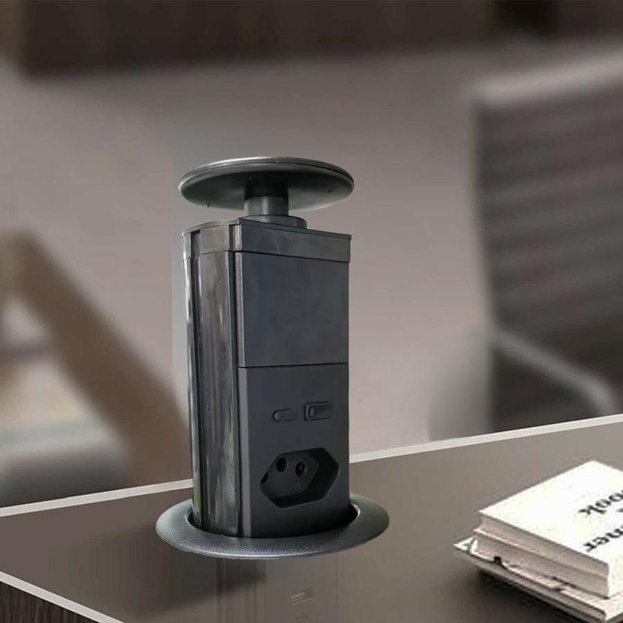 Tomada de Mesa 3 Pinos com Elevação + USB -TIPO-C 5V/10A-20A Carregador Multifuncional Escritório