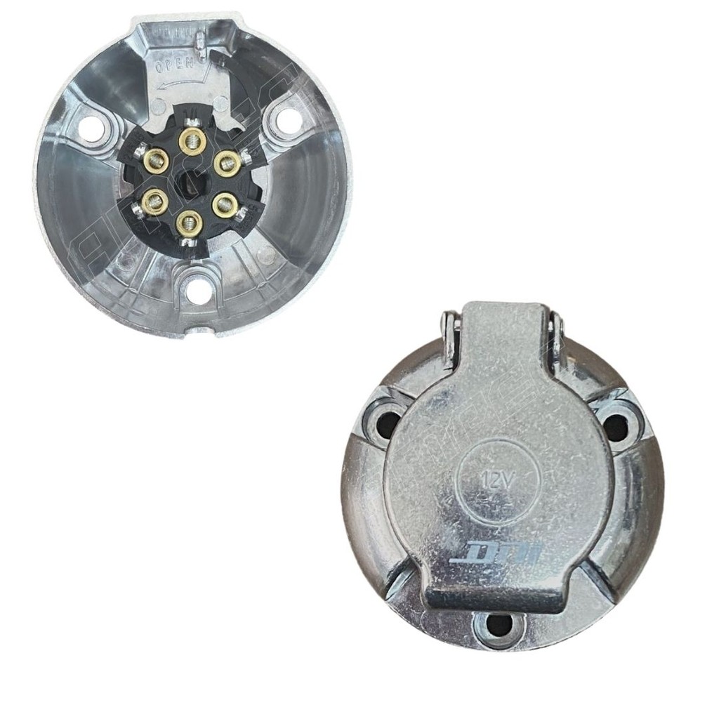 Tomada Elétrica Engate Carretinha Carreta Macho Fêmea 6 Pinos/ Polos Metal Alumínio DNI 8325