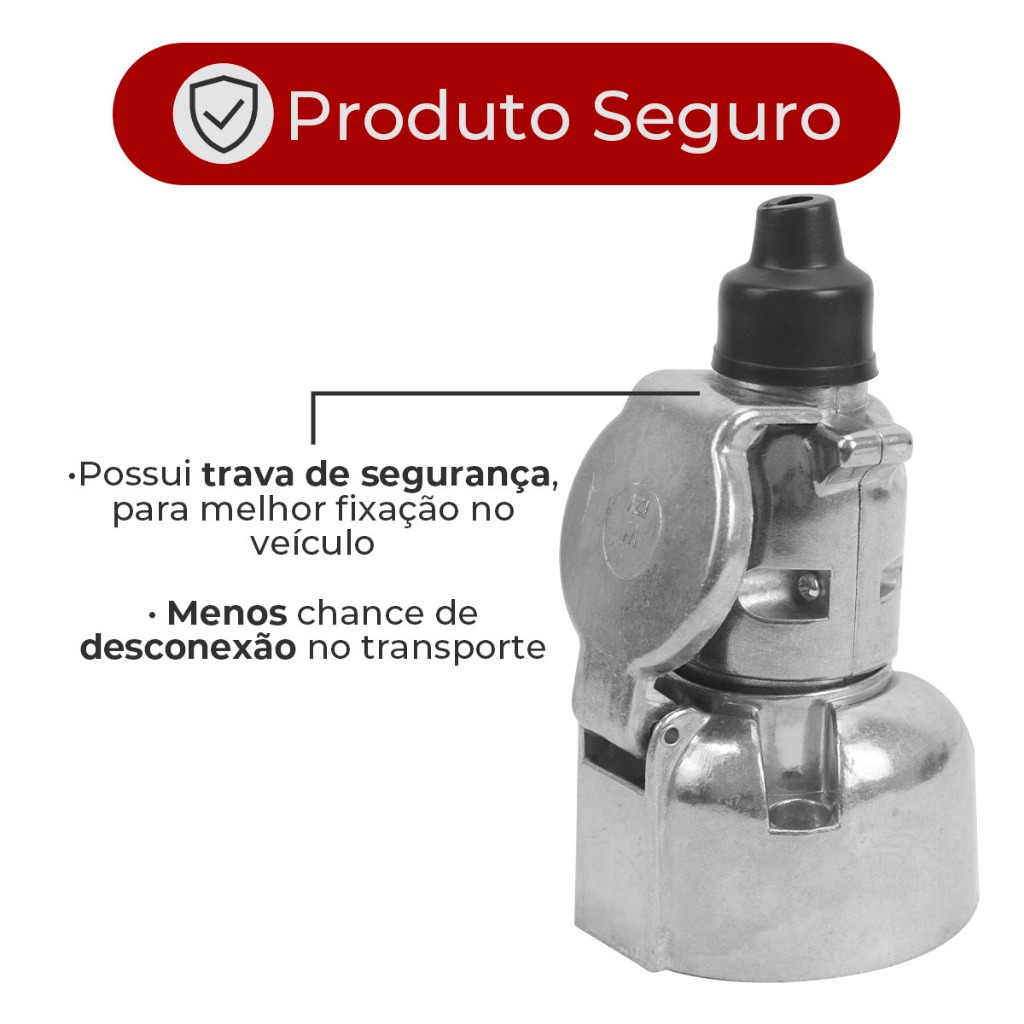 Tomada Engate Reboque 6 Polos + Cabo PP 6 Vias 1mm² Alumínio Cromado Carretinha Carreta Kit Completo