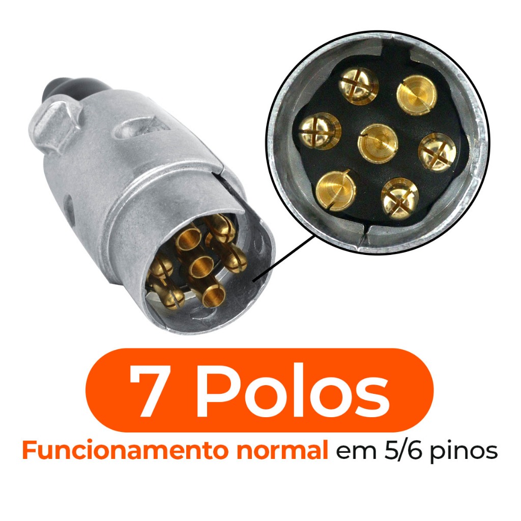 Tomada Engate Reboque 7 Pinos Macho Femea Aluminio Cromada Reforçada Carretinha