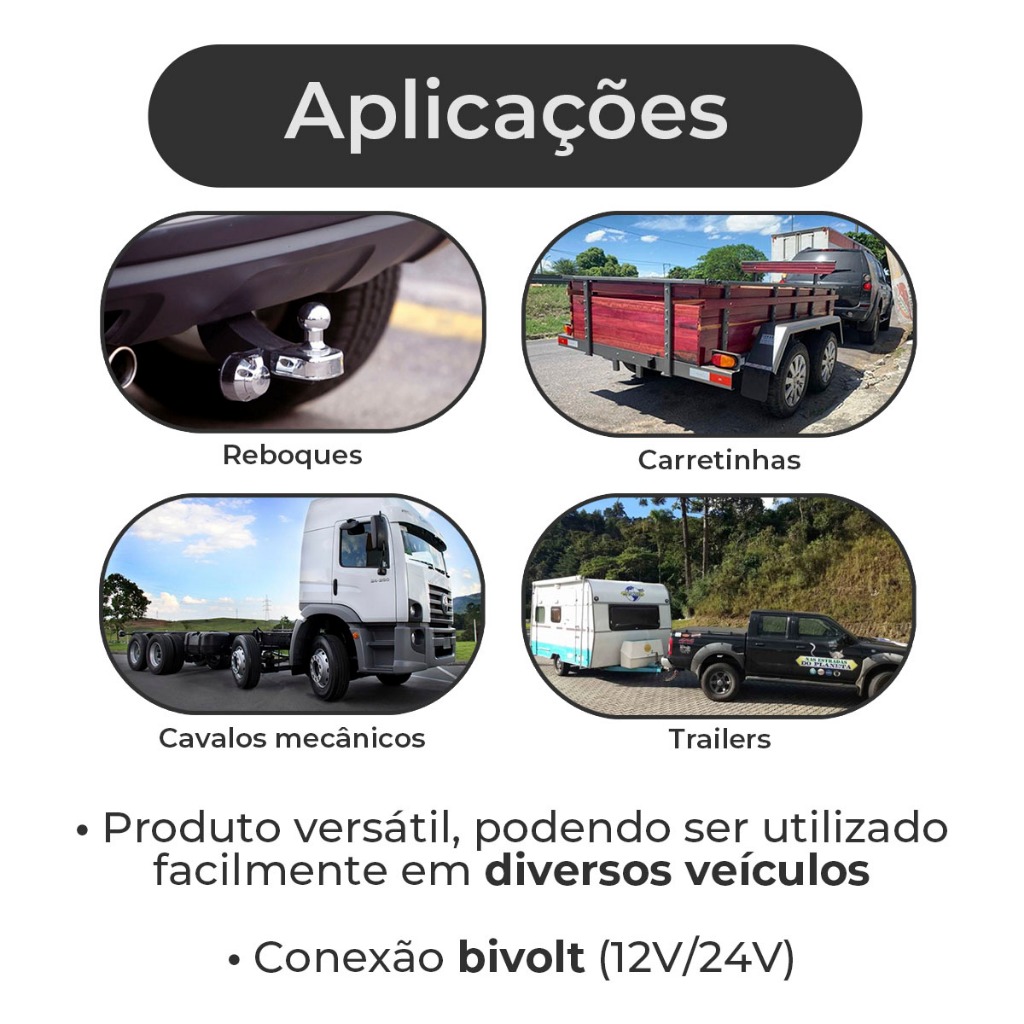 Tomada Engate Reboque Completa Fêmea Macho Cromada 6 Polos Carretinha Carreta Caminhonete Alumínio