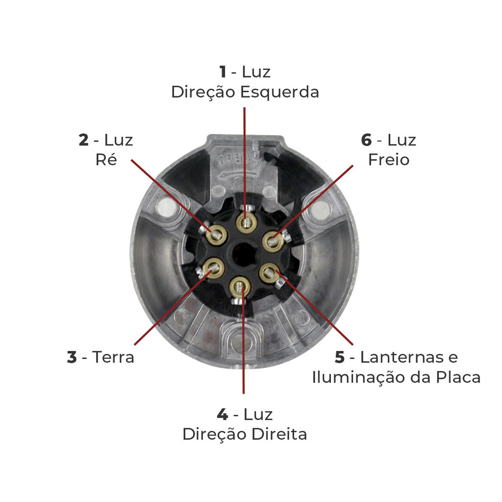 Tomada Femea Reboque 6 Polos Engate Alumínio Cromado Carreta Carretinha Cavalo Mecânico Original