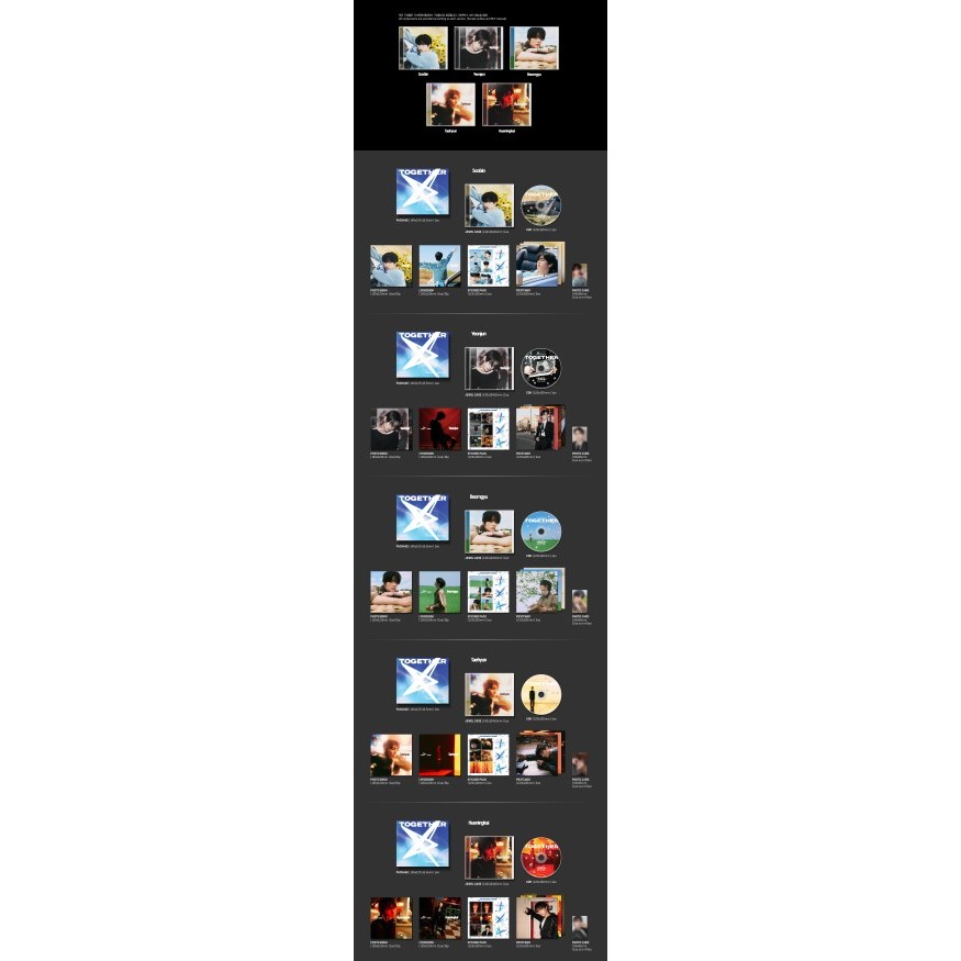 ATUALIZADO: 2025-07 ATUALIZADO: 2025-07-07 DATA LIBERADA: JULHO 21, 2025 💛TOMORROW x TOGETHER (TXT) O Capítulo da estrela: JUNTO (Solo Track Ver.) EMBALAGEM: 1 TIPO / L145 X H127 X D15.5(mm) CASO DE JOIA DE JOIA COM CASO: W142 X H124 X D5(mm) FOTOBOOK FOTOBOOK: W120 X H120(mm) / 16p LIVRO DE LÍRICA: W120 X H120 (mm) / 16p PACOTE DO ADESIVO: W120 X H120(mm) CARTÃO DE POSTAGEM: W120 X H120(mm) CARTÃO FOTOGRÁFICO: W55 X H85(mm) / ALEATÓRIO 1 DE 5 CDR: W120 X H120 (mm) #SIXKSHOP #TXT