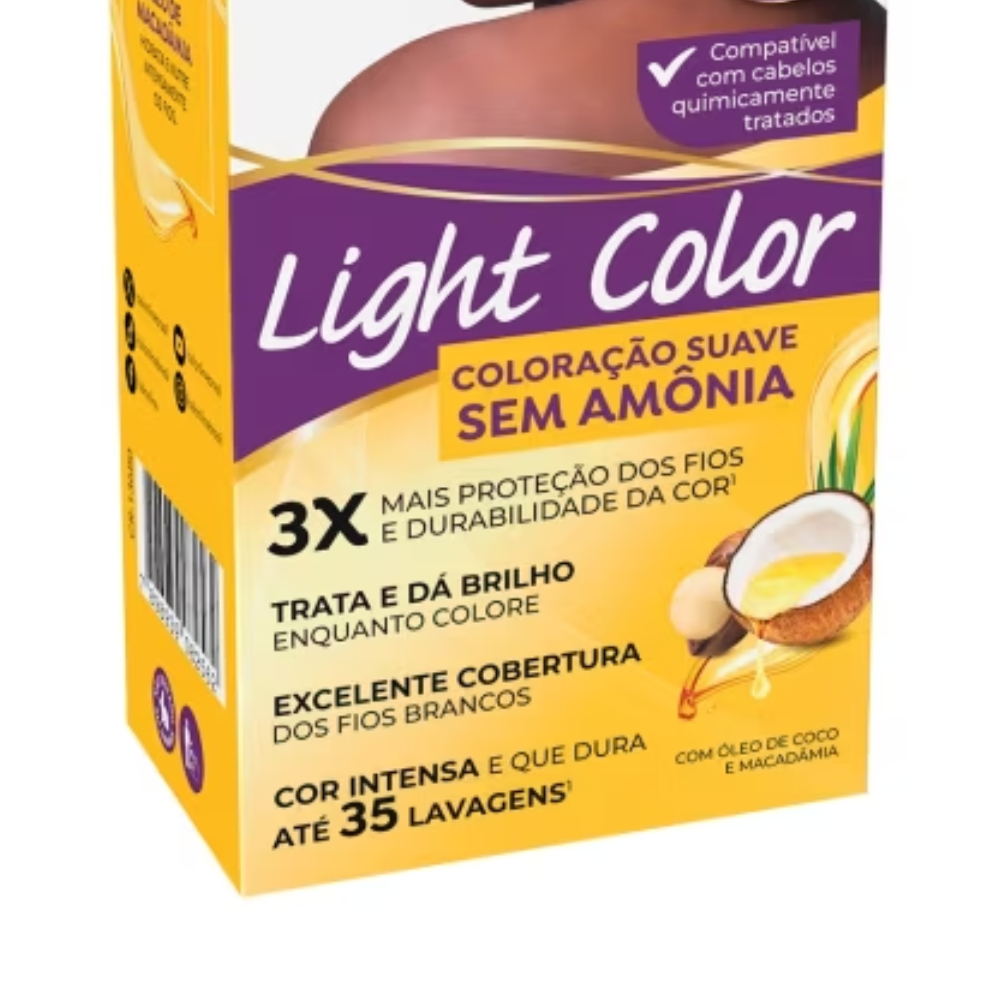 Tintura Light Color Salon Line Colore e Cuida do Seu Cabelo com Óleo de Coco e Óleo de Macadâmia A Tintura Light Color foi especialmente formulada com Óleo de Coco e Óleo de Macadâmia, proporcionando cobertura intensa e tratamento para seus fios. Sua fórmula sem amônia oferece uma coloração suave, que trata e colore ao mesmo tempo, sendo ideal para quem deseja uma mudança sem prejudicar a saúde dos cabelos. E o melhor de tudo, é um produto liberado para quem segue as tendências de cuidados capilares naturais. 🌟 Benefícios: ✅ Sem amônia – cor e tratamento suaves. ✅ Óleos nutritivos – enriquecido com óleo de coco e óleo de macadâmia. ✅ Produto liberado – adequado para diversos tipos de tratamentos capilares. ✅ Fórmula suave – ideal para uma experiência de coloração mais saudável. 3️⃣ Aplicação e Tempo de Ação: Aplique a mistura mecha por mecha, começando pela raiz. Para cabelos finos, louros ou danificados: Deixe agir por 15 minutos. Para cabelos normais, grisalhos ou escuros: Deixe agir por 20 minutos. Para cabelos já coloridos: Aplique na raiz por 15 minutos e no comprimento e pontas por mais 5 minutos. 4️⃣ Finalização: Enxágue bem até que a água corra limpa. Aplique o Condicionador Salon Line e deixe agir por 3 minutos. Enxágue abundantemente. Transforme o seu visual com Tintura Light Color Salon Line e garanta cabelos coloridos, hidratados e cheios de vida!