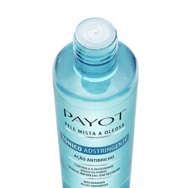 Tônico Adstringent Pele Mista Oleosa Payot Possui ação adstringente e refrescante. Elimina o brilho excessivo da pele. Ação Matte. Fórmula enriquecida com NIACINAMIDA e ALGAS MARINHAS que controla oleosidade ao longo do dia e minimiza os poros. Oil Free. Sem álcool, corantes e parabenos. Não comedogênico. Dermatologicamente testado. Eficácia Comprovada.