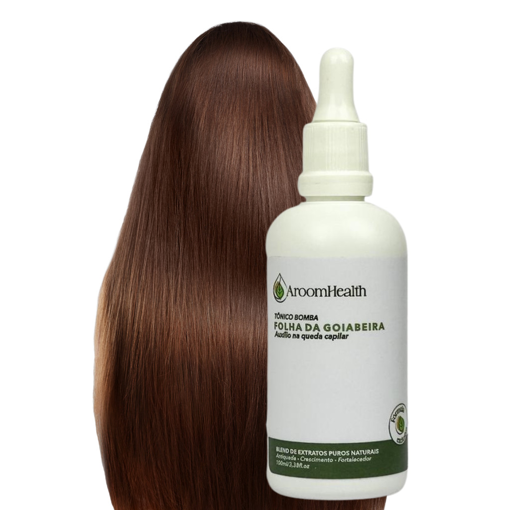 Tônico Bomba Capilar Folha da Goiabeira 100 ml – Fórmula Exclusiva AroomHealth O Tônico Bomba Folha de Goiabeira foi desenvolvido para fortalecer os fios, melhorar a aparência do couro cabeludo e apoiar a rotina de cuidados capilares de forma natural e eficaz. Sua fórmula tem como ingrediente premium a Folha de Goiabeira, tradicionalmente utilizada em cuidados capilares por suas propriedades equilibrantes e fortalecedoras, contribuindo para fios mais resistentes, encorpados e com aspecto saudável. A composição é enriquecida com Pantenol (Pró-Vitamina B5), ativo reconhecido por ajudar na hidratação, maciez e melhoria da textura dos fios, além de favorecer a sensação de cabelo mais alinhado e sedoso. Como ativos auxiliares, o tônico conta com extratos vegetais cuidadosamente selecionados de Alecrim, Bardana, Cavalinha, Hortelã-pimenta, Jaborandi e Semente de Abóbora, que complementam a fórmula oferecendo frescor, leveza e suporte à rotina de cuidado do couro cabeludo. Sua textura líquida permite aplicação prática, confortável e rápida absorção, sendo ideal para uso contínuo em todos os tipos de cabelo. Produto indicado para quem busca um cuidado capilar natural, vegano e livre de ativos agressivos. Modo de uso Aplicação diretaAplique o tônico puro no couro cabeludo, massageando suavemente com as pontas dos dedos. Deixe agir por até 45 minutos e lave normalmente, removendo o excesso. Uso com máscara capilar Adicione 1 colher de sopa do tônico para cada 100 g da sua máscara capilar. Misture bem, aplique nos fios e couro cabeludo, coloque uma touca e deixe agir por até 45 minutos. Enxágue. Uso com shampoo Adicione 20 ml do tônico para cada 100 ml de shampoo neutro. Utilize normalmente durante a lavagem. Características do produto Embalagem em frasco branco com conta-gotas Conteúdo 100 ml Validade de 2 anos (verificar no rótulo) Precauções Uso externo Armazenar em local fresco, ao abrigo da luz Manter fora do alcance de crianças e animais Gestantes e lactantes devem consultar um profissional de saúde antes do uso Em caso de irritação ou sensibilidade, suspender o uso.