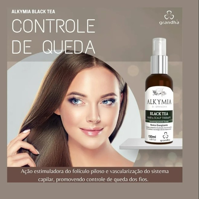 BLACK TEA HAIR & SCALP THERAPY Se você busca um tratamento para cabelos mais saudáveis, fortes e brilhantes? O Black Tea Hair & Scalp Therapy é o que você precisa! Sua fórmula é uma potente associação de alta dosagem de extrato glicólico de chá preto com óleo essencial de tomilho, que ajuda a reduzir a adesão de partículas poluentes nos cabelos, estimula o folículo piloso e combate o envelhecimento precoce dos fios. Além disso, o Black Tea possui ação imediata contra a fotodegradação, proporcionando fios mais saudáveis, fortes, brilhantes e maleáveis. Com resultados visíveis desde as primeiras aplicações, o Black Tea Hair & Scalp Therapy é a solução perfeita para você que deseja ter cabelos mais saudáveis e fortes. Sua fórmula dermatologicamente testada é ideal para os cuidados do dia a dia, assim como para os protocolos de aromaterapia e argiloterapia. Não perca mais tempo e experimente agora mesmo o Black Tea Hair & Scalp Therapy. Adquira este poderoso tratamento para cabelos e descubra como é fácil ter cabelos mais saudáveis, fortes e brilhantes. Aplique diretamente nos cabelos úmidos e massageie suavemente até formar espuma. Enxágue bem e repita o processo se necessário. MODO DE USO Aplique o Black Tea nos cabelos lavados, ainda levemente úmidos, e espalhe o produto cuidadosamente por todo o cabelo e couro cabeludo. Não enxágue. Finalize massageando o couro cabeludo e penteie os cabelos com cuidado, utilizando pente ou escova. INFORMAÇÕES IMPORTANTES Produto certificado pela ABT - Academia Brasileira de Tricologia. Dermatologicamente testado. Ideal para cuidados do dia a dia e procedimentos de aromaterapia e argiloterapia. Tônico energizante que combate os impactos da poluição, atua no equilíbrio da microbiota e na energia vital do sistema capilar. Não testado em animais. Cosmético fitoterápico: pode haver precipitação dos princípios ativos durante o armazenamento. Recomenda-se agitar o produto antes de usar.