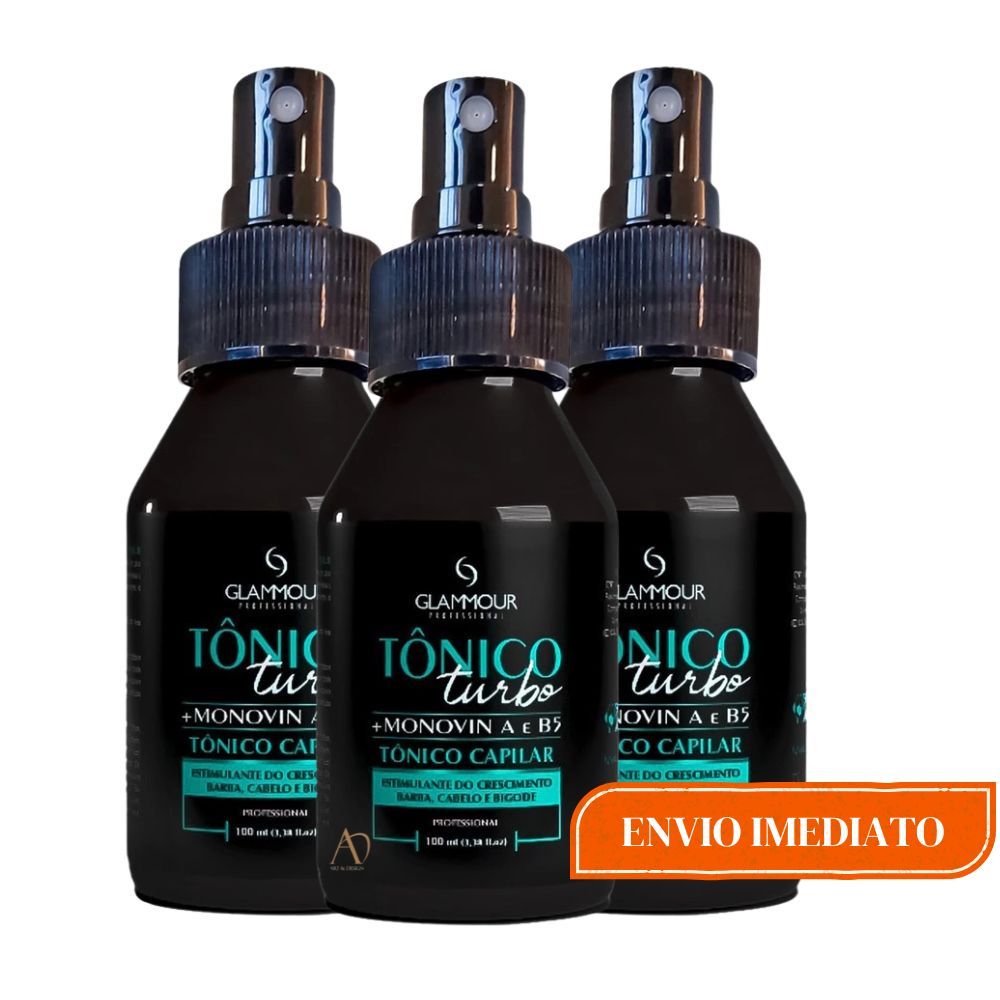 É um Tônico Capilar Potente Que vai auxiliar a parar a Queda de Cabelos. Vai te Ajudar a ter aquela Barba com volume Fortalece o bulbo capilar O Tônico turbo da Glammour é um produto poderoso para uso constante que estimula o crescimento de Cabelos, Barba e Bigode devido a ação das vitaminas e D-pantenol, Que além do crescimento promovem fortalecimento da Fibra. -- Estimulante do Crescimento -- Barba -- Cabelo -- Bigode Contém: - Pró Monovin - Vitamina A - Vitamina B5 Modo de usar: Aplique o Tonico nos cabelos ou na Barba 2 vezes ao dia, esse produto é para uso constante.