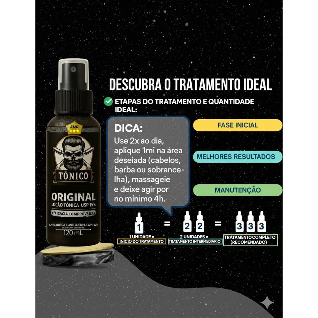 Tônico Crescimento Capilar, cabelo, barba e sobrancelha com falhas