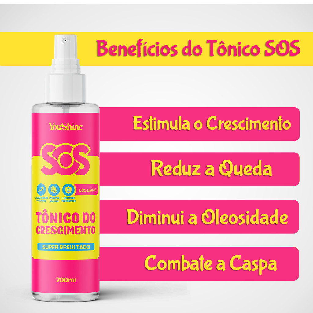 | Tônico de Crescimento Acelerado SOS YouShine 200ml Spray Fios Mais ... este produto | R$ 19,84 | 60% | 4.8/5 | — |