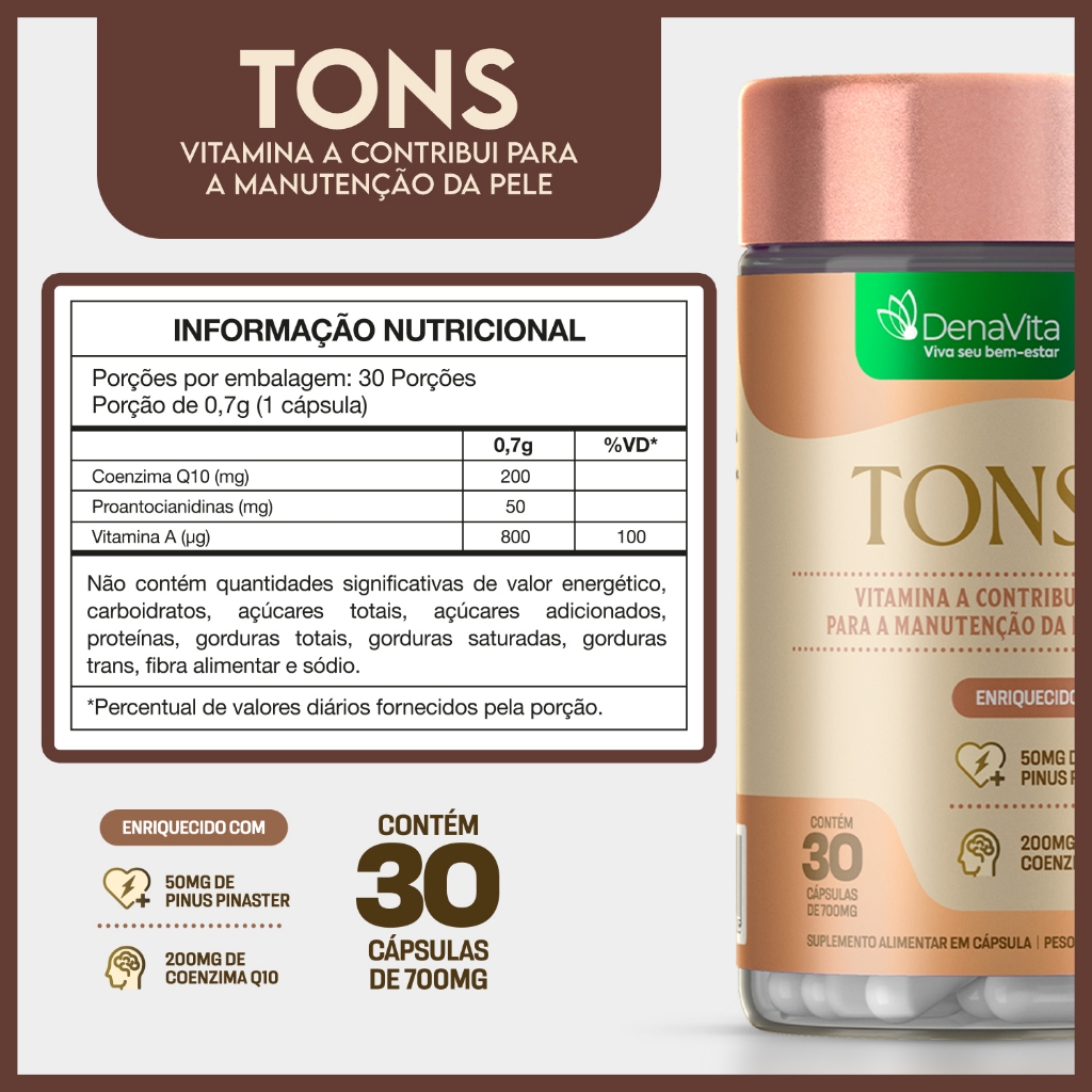 TONS - Enriquecido Com Pinus Pinaster e Coenzima Q10, Uniformizador de Tons irregulares e Melasma - Denavita