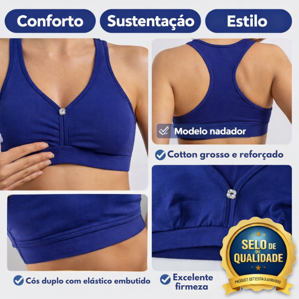 Se você busca conforto, sustentação e estilo no seu treino, esse top feminino é a escolha ideal! Desenvolvido em cotton grosso e reforçado, ele oferece excelente firmeza sem abrir mão da leveza e do toque macio. O modelo nadador proporciona maior liberdade de movimento, perfeito para academia, caminhadas e treinos do dia a dia. O diferencial está no cós duplo com elástico embutido, garantindo ajuste seguro ao corpo sem apertar ou incomodar. Além disso, o tecido não é transparente, trazendo mais confiança durante o uso. Sem bojo, ele se adapta naturalmente ao corpo, valorizando a silhueta com conforto. Outro detalhe que faz toda diferença é o acabamento com costura reforçada e botão decorativo no busto, trazendo um toque moderno e delicado à peça. Versátil e funcional, é perfeito tanto para treinar quanto para compor looks casuais com estilo esportivo. 📏 Medidas: M veste 36/38 G veste 40/44 GG veste 44/46 📦 Produto idêntico ao da foto 🚚 Envio imediato após confirmação do pagamento 💬 Atendimento rápido via chat para qualquer dúvida ✨ Garanta já o seu e tenha mais conforto, segurança e estilo nos seus treinos!