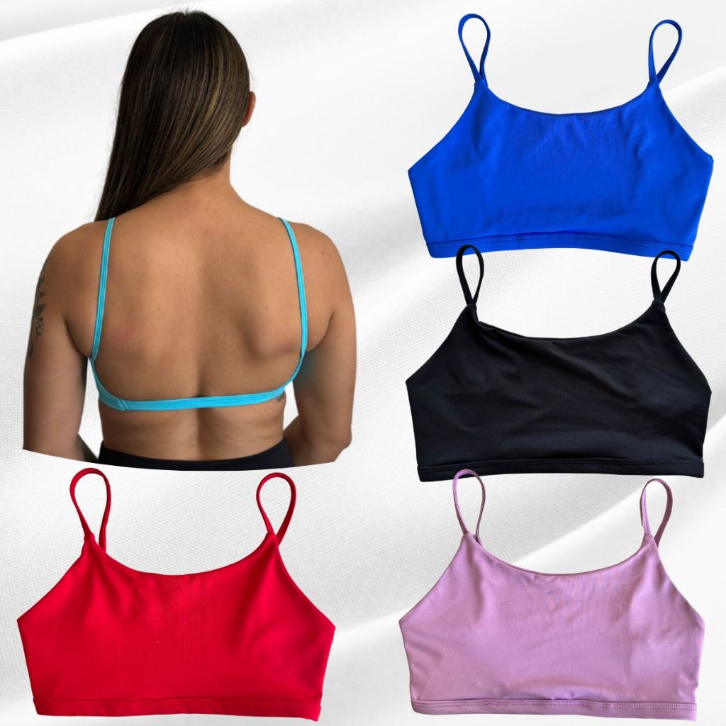 Top Academia Fitness Duplo Poliamida Costas Nua Alça Fina Com Elástico Na Barra