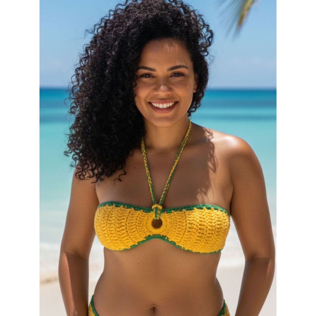 Top Brasil de Crochê com Alcinha - 100% Algodão - Moda Praia Primavera/Verão