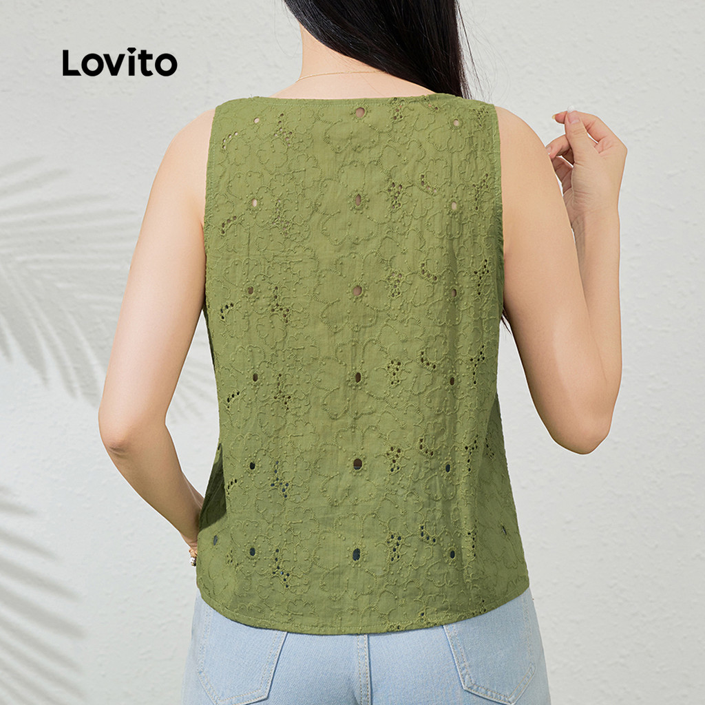 Top colorido de algodão bordado simples Casual diário sem mangas-BLB149P1D1026