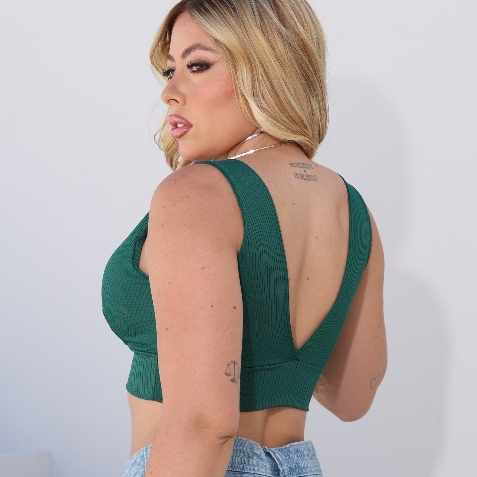 Top Cropped Feminino Canelado Decote V Com Bojo Academia Moda Gringa Fitness Envio Imediato Sensual