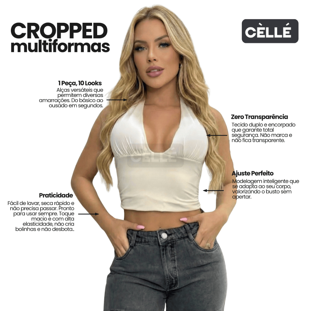 Top cropped feminino frente única com amarração multiformas, perfeito para criar diferentes looks com uma única peça. Ideal para os dias de verão, valoriza o busto e se ajusta ao corpo com conforto. Confeccionado em tecido com forro duplo, oferece mais segurança, zero transparência e excelente caimento. A amarração permite usar de várias formas, adaptando ao seu estilo. Versátil e moderno, combina com jeans, shorts ou saias. Veste do 36 ao 42, com tecido confortável e boa elasticidade. ✔️ Frente única ✔️ Amarração multiformas ✔️ Forro duplo ✔️ Ideal para o verão ✔️ Ajuste confortável ao corpo 👉 Pronta entrega