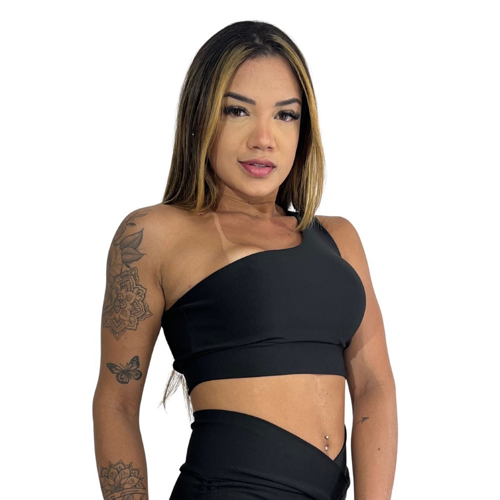 Top Cropped Feminino Regata Um Ombro Só Suplex Fitness dia a dia