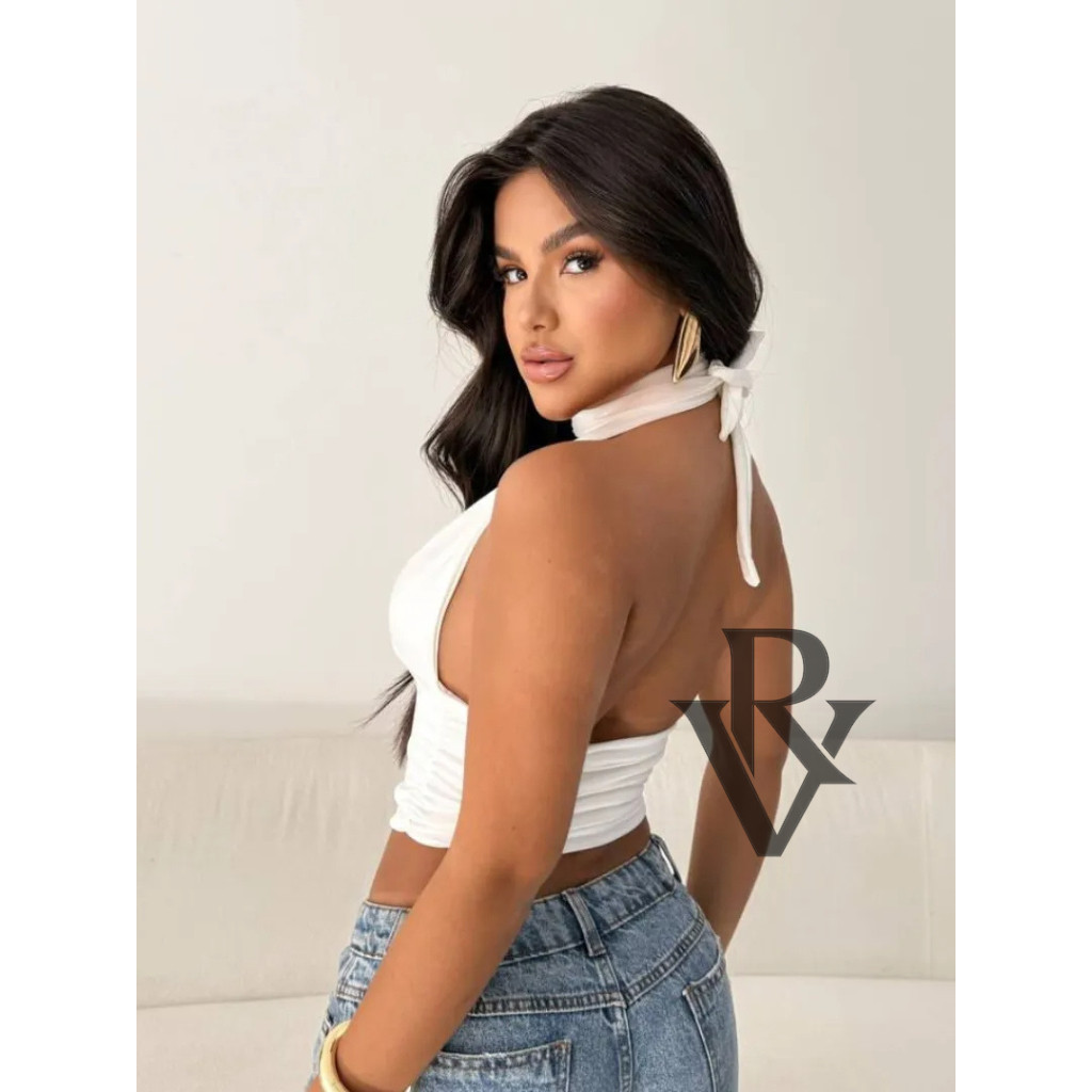 Top Cropped Livia Feminino Multi Formas Frente Única Amarração Blusa Cropped Com Amarração Decote